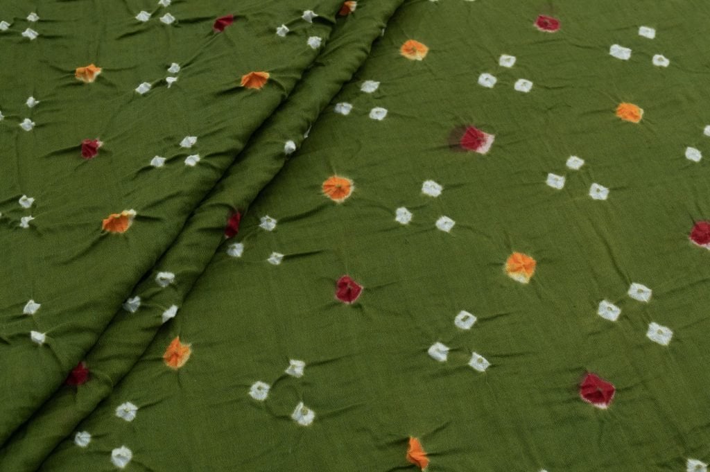 Green – Bandhani Tie Dye 100% Pure Soft Cotton Satin Finish Fabric