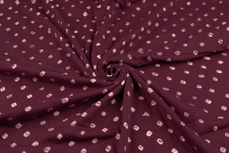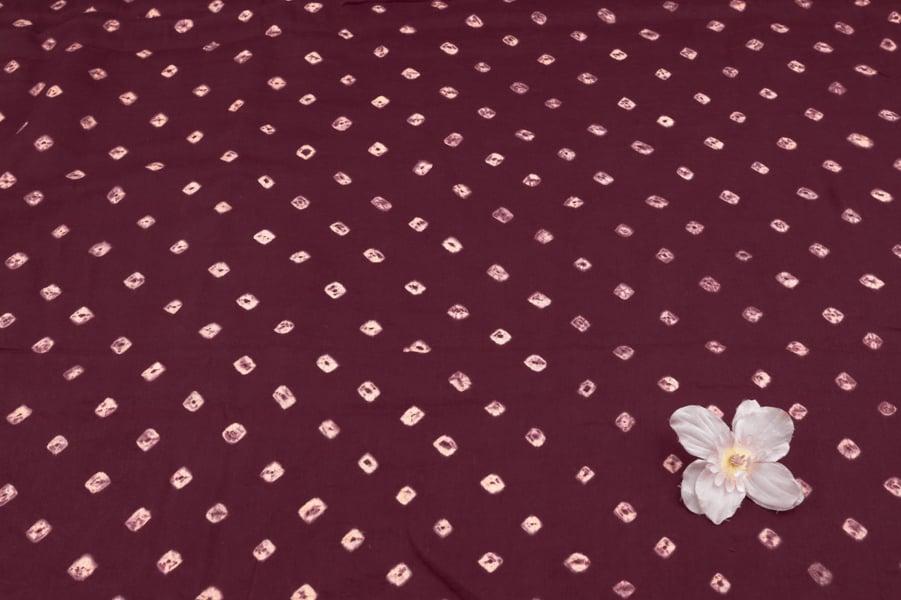 Brownish Red Bandhani Tie Dye 100% Pure Soft Cotton Satin Finish Fabric