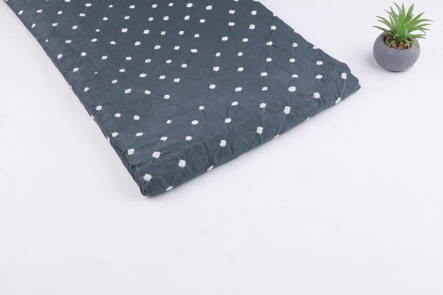 Slate Indigo Blue Bandhani Tie Dye 100% Pure Soft Cotton Satin Finish Fabric