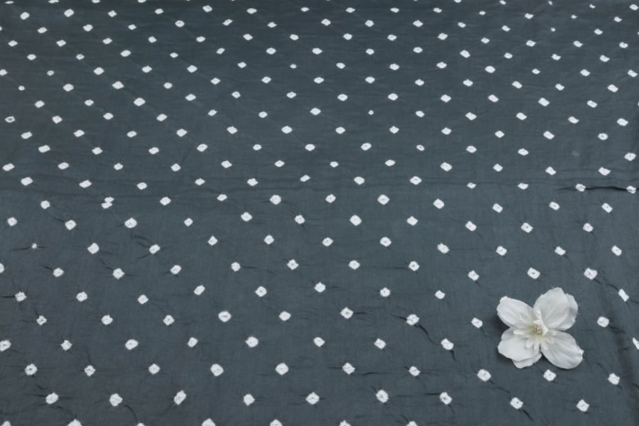 Charcoal Gray Bandhani Tie Dye 100% Pure Soft Cotton Satin Finish Fabric