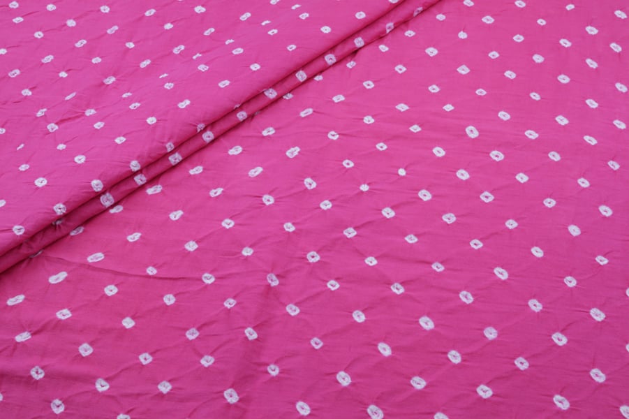 Fuchsia Pink Bandhani Tie Dye 100% Pure Soft Cotton Satin Finish Fabric