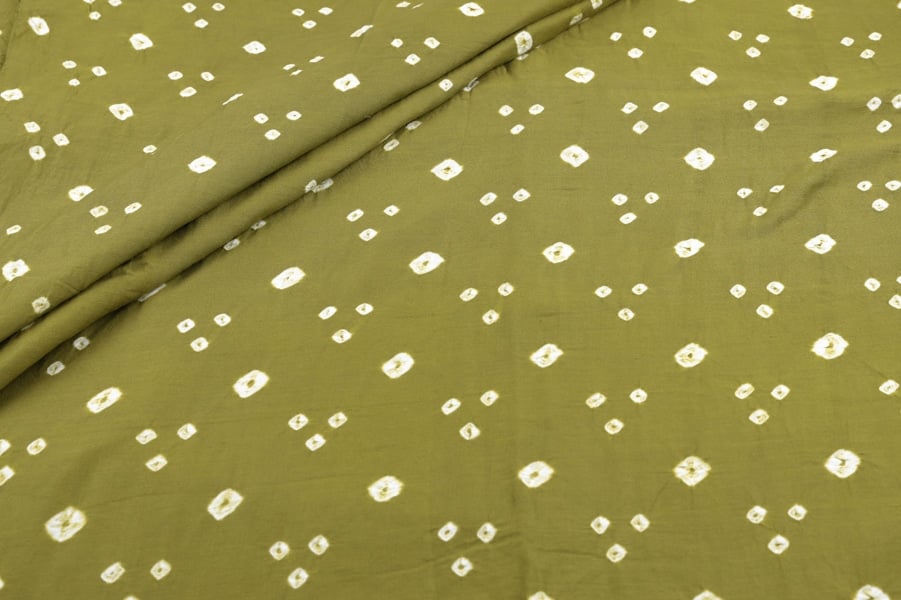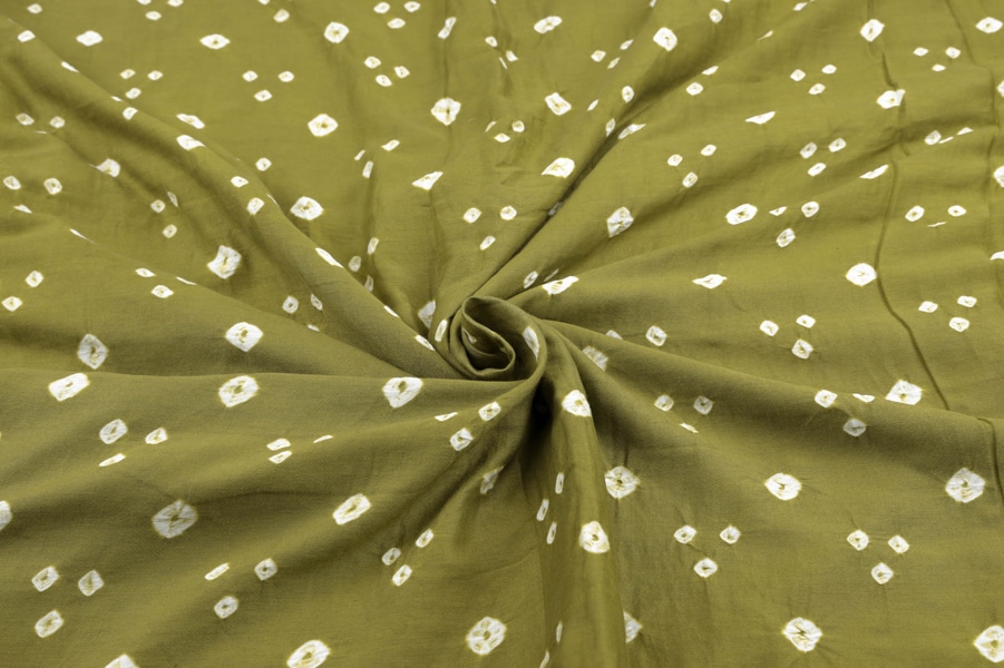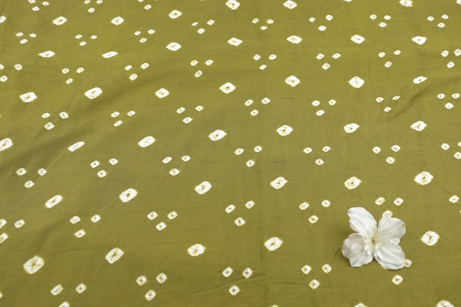 Olive Green Bandhani Tie Dye 100% Pure Soft Cotton Satin Finish Fabric