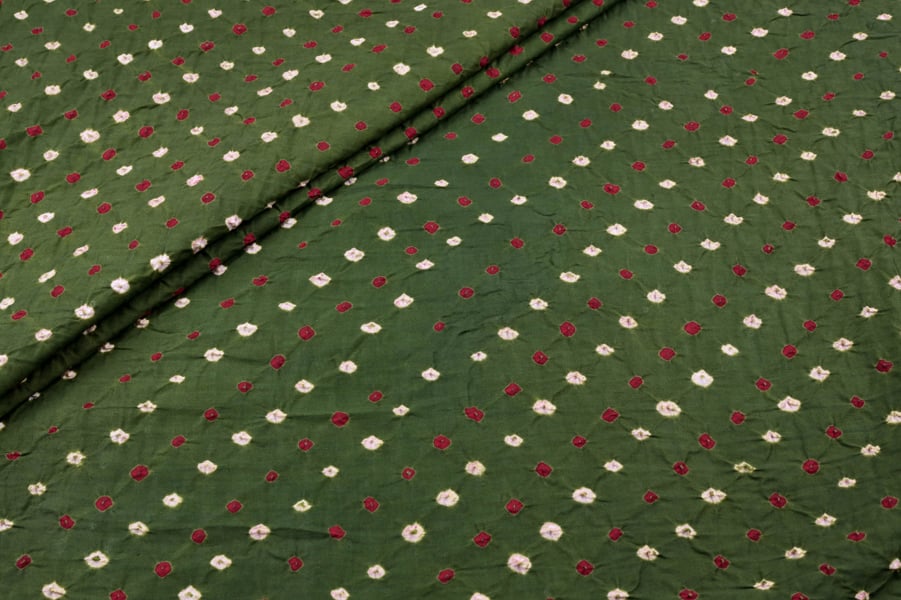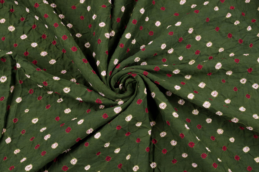 Olive Green Bandhani Tie Dye 100% Pure Soft Cotton Satin Finish Fabric