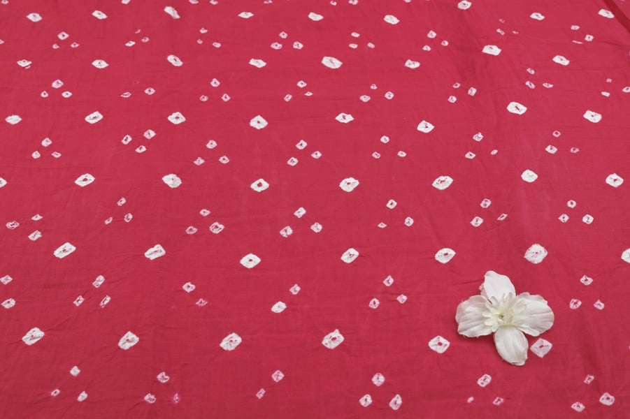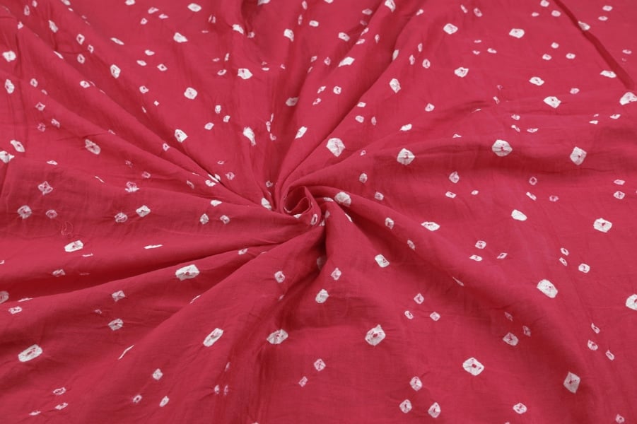 Rose Red Bandhani Tie Dye 100% Pure Soft Cotton Satin Finish Fabric
