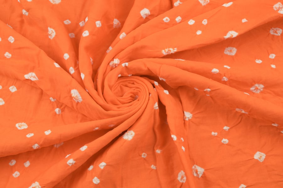Princeton Orange Bandhani Tie Dye 100% Pure Soft Cotton Satin Finish Fabric