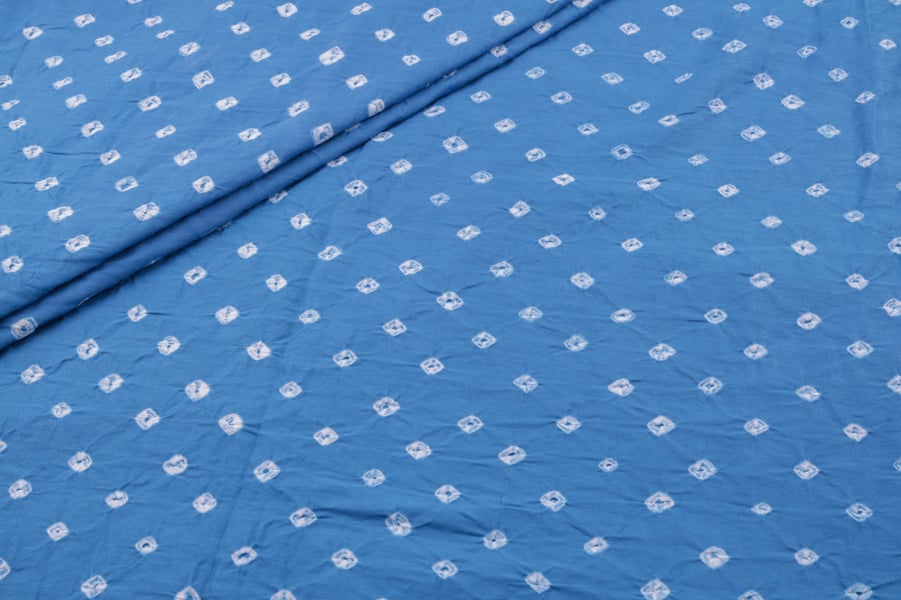 Blue Bandhani Tie Dye 100% Pure Soft Cotton Satin Finish Fabric