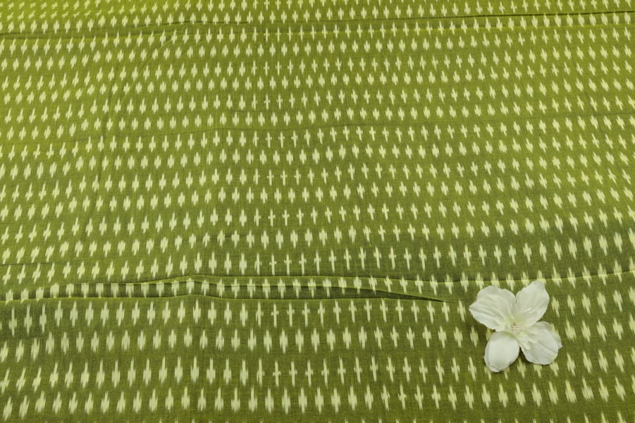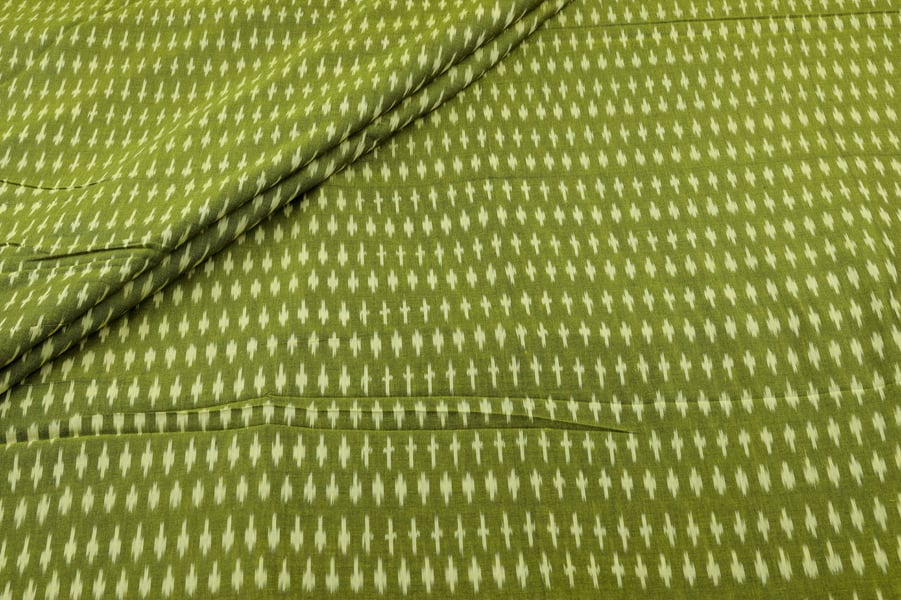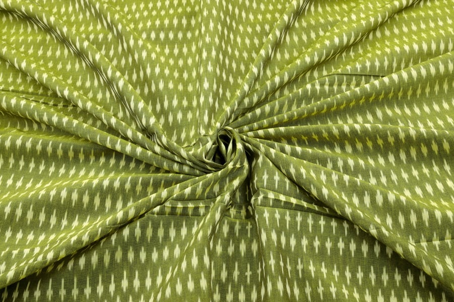 Asparagus Green Mercerised Fine Handloom Ikkat Tie-Dye Pure Soft Cotton Fabric