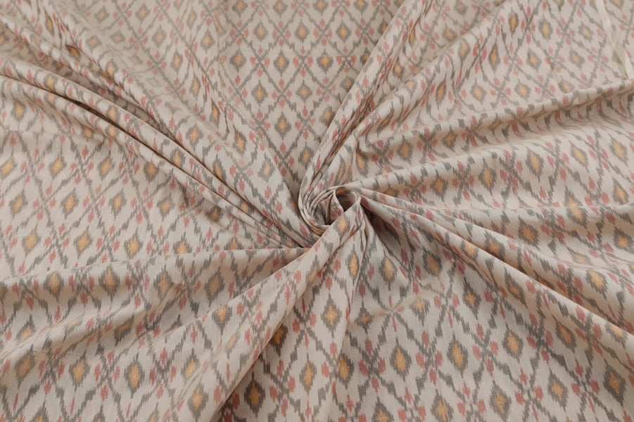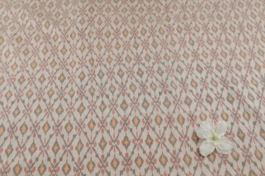 Beige Authentic Handwoven Soft Silk-Cotton Ikkat Fabric