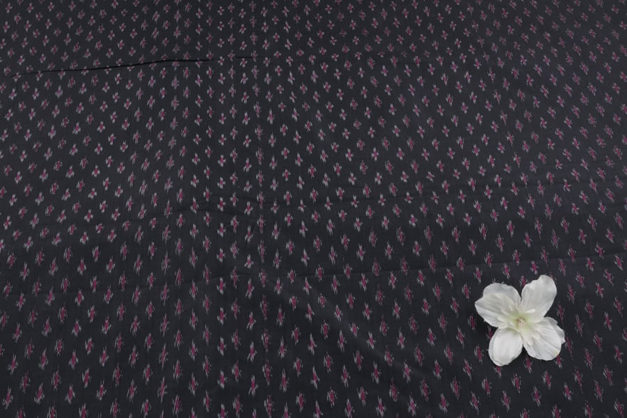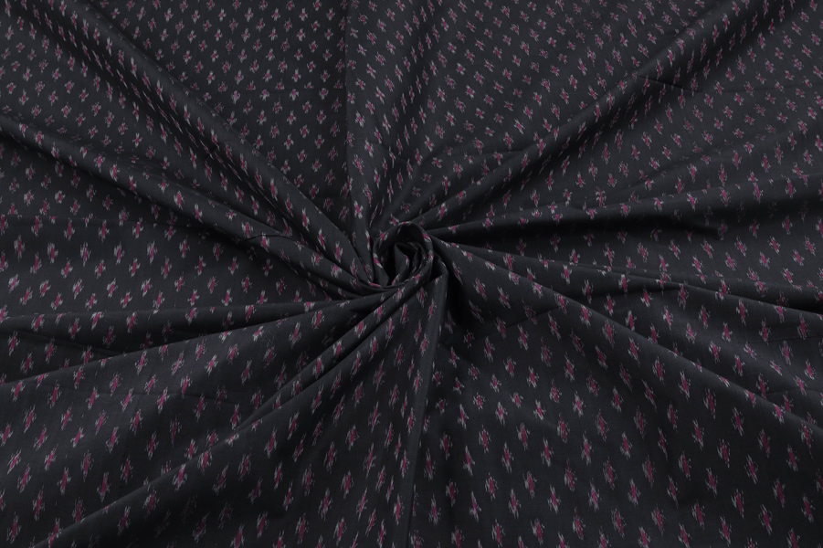 Black Authentic Handwoven Soft Silk-Cotton Ikkat Fabric