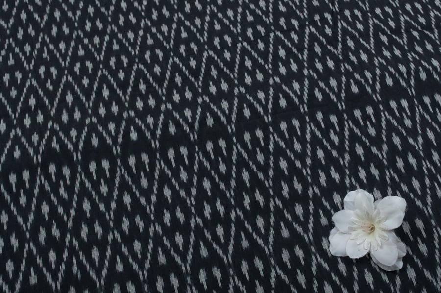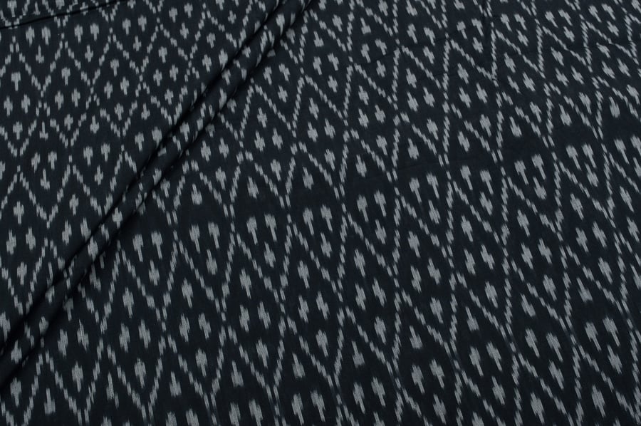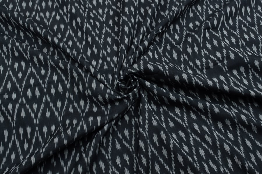 Black Mercerised Fine Handloom Ikkat Tie-Dye Pure Soft Cotton Fabric