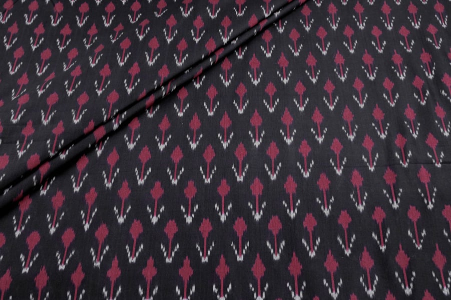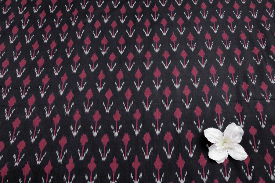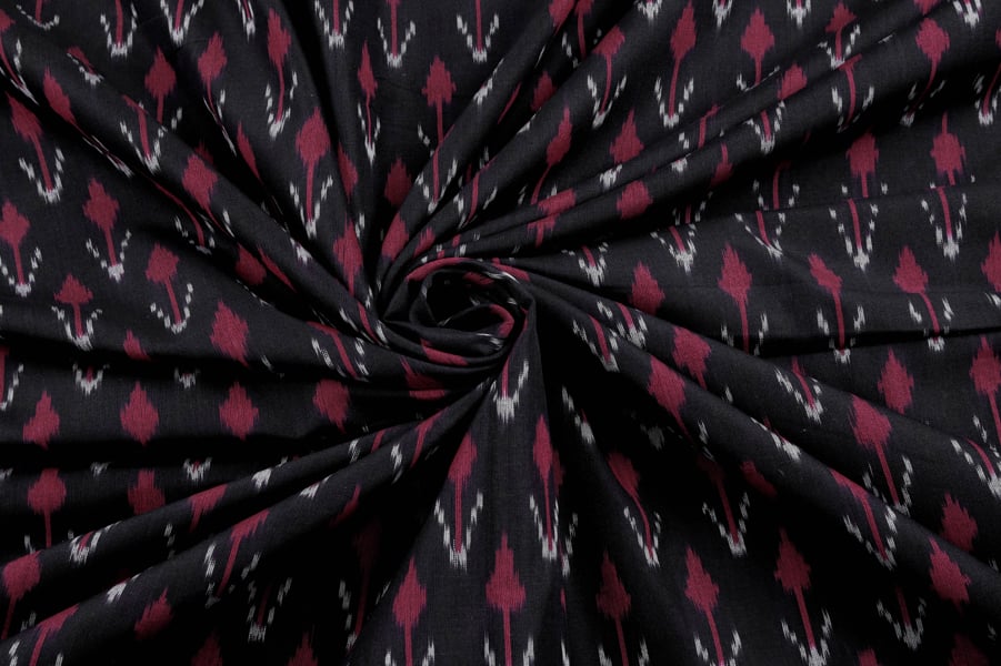 Black Mercerised Fine Handloom Ikkat Tie-Dye Pure Soft Cotton Fabric