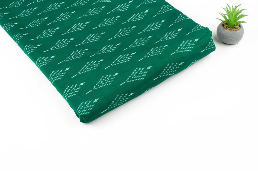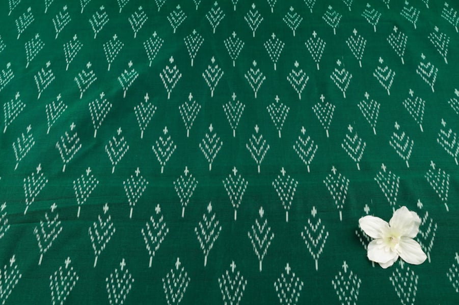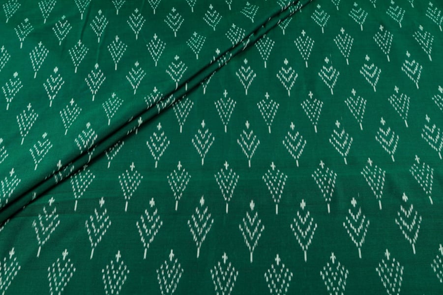 Forest Green Authentic Handwoven Soft Silk-Cotton Ikkat Fabric