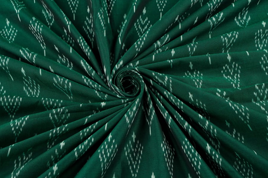 Bottle Green Mercerised Fine Handloom Ikkat Tie-Dye Pure Soft Cotton Fabric