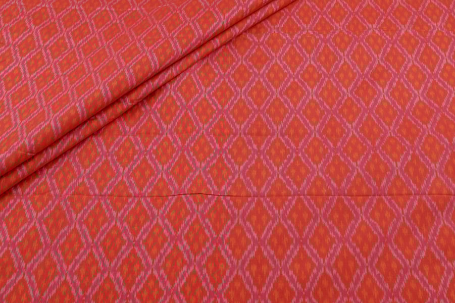 Tangelo Orange Authentic Handwoven Soft Silk-Cotton Ikkat Fabric