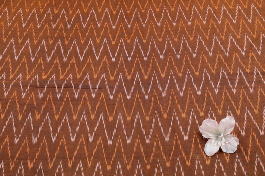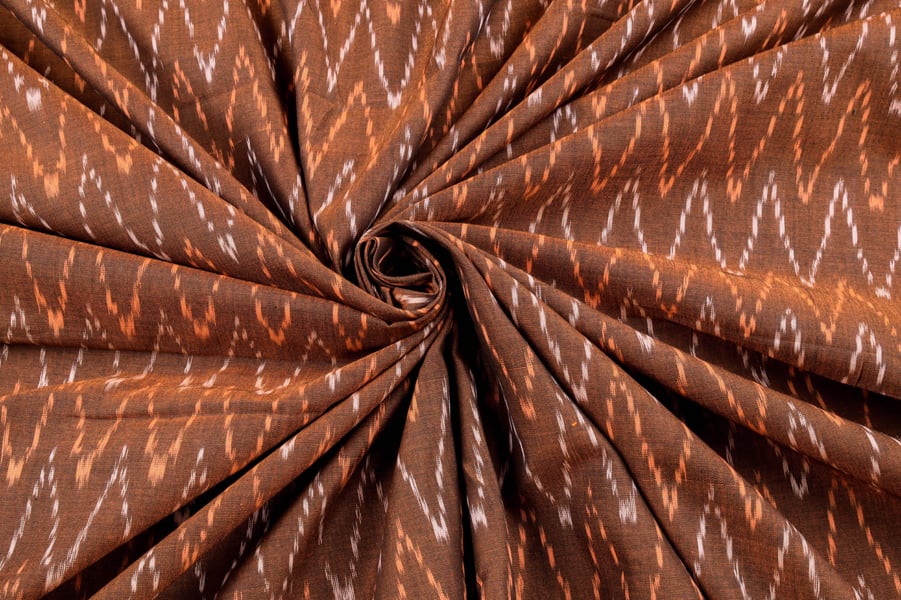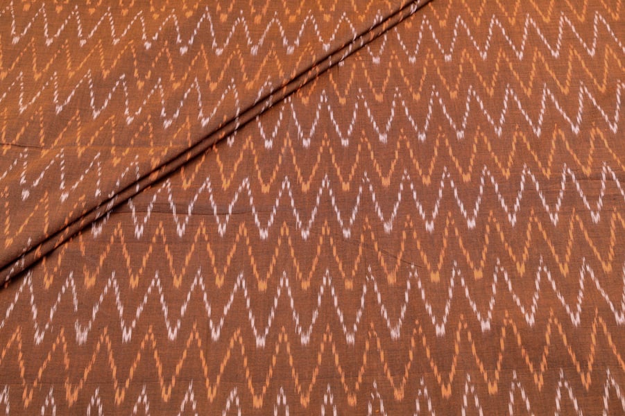 Chocolate Brown Mercerised Fine Handloom Ikkat Tie-Dye Pure Soft Cotton Fabric