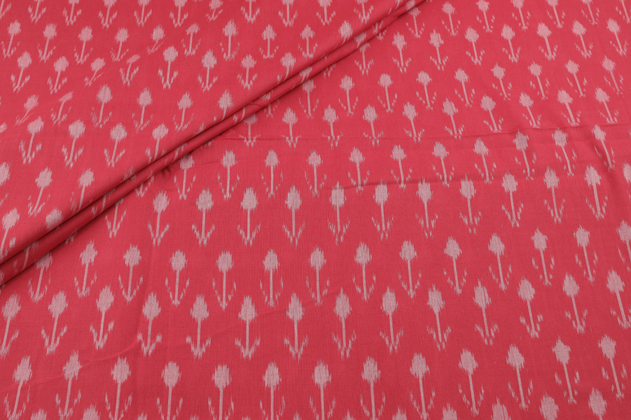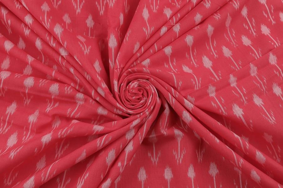 Coral Pink Mercerised Fine Handloom Ikkat Tie-Dye Pure Soft Cotton Fabric