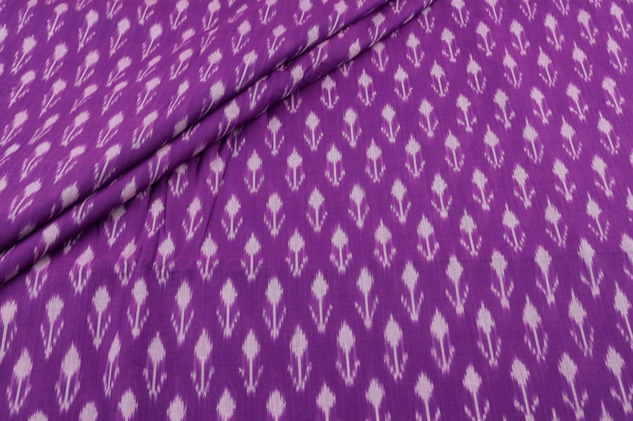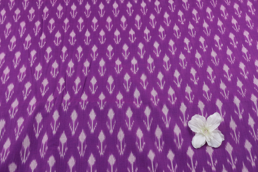 Electric Purple Mercerised Fine Handloom Ikkat Tie-Dye Pure Soft Cotton Fabric