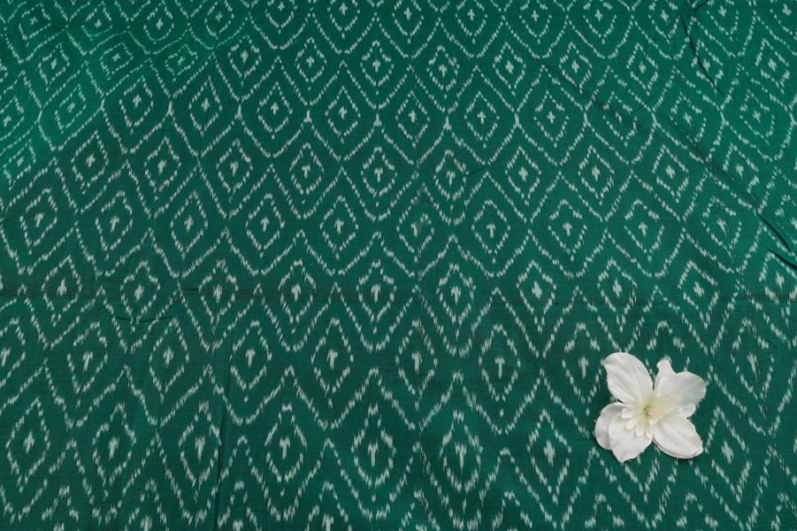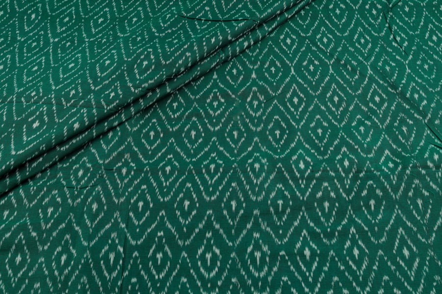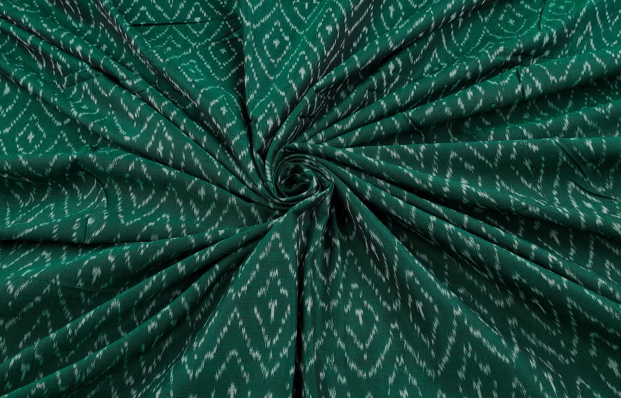 Green Mercerised Fine Handloom Ikkat Tie-Dye Pure Soft Cotton Fabric