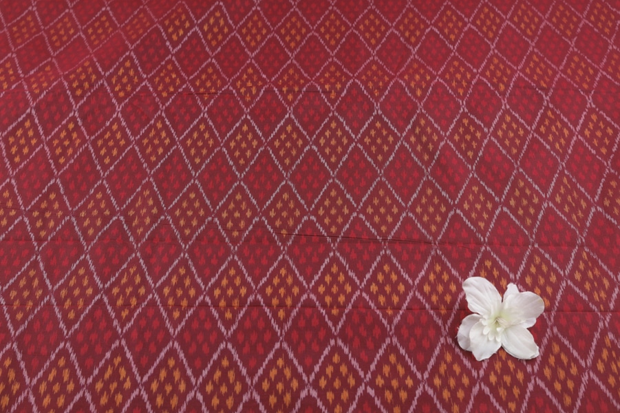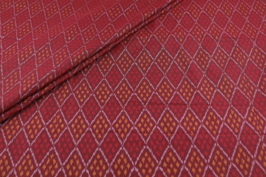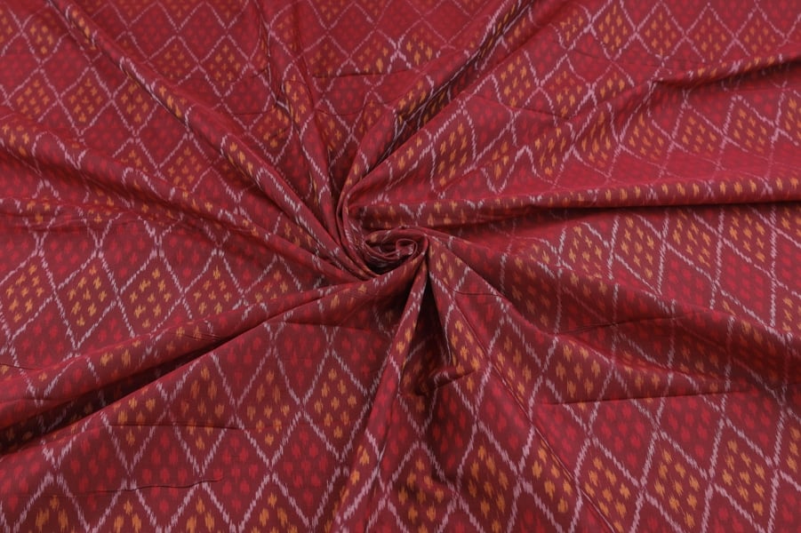 Maroon Red Authentic Handwoven Soft Silk-Cotton Ikkat Fabric