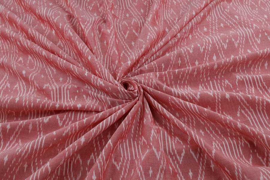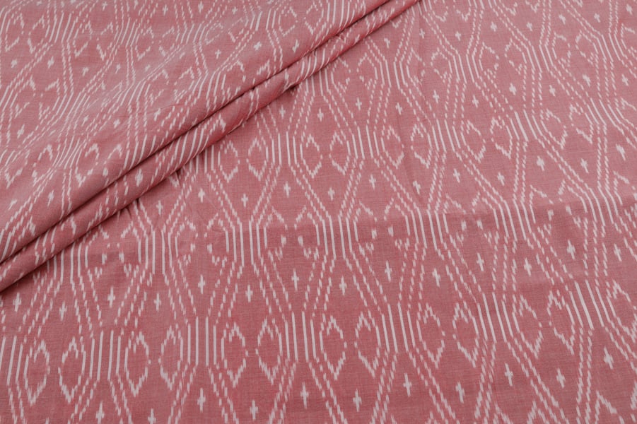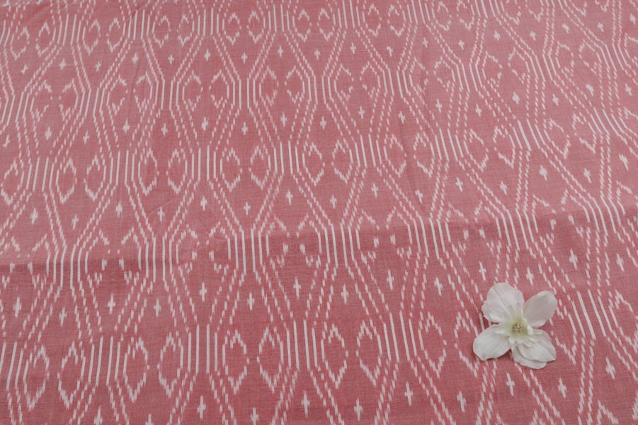 Pink Mercerised Fine Handloom Ikkat Tie-Dye Pure Soft Cotton Fabric
