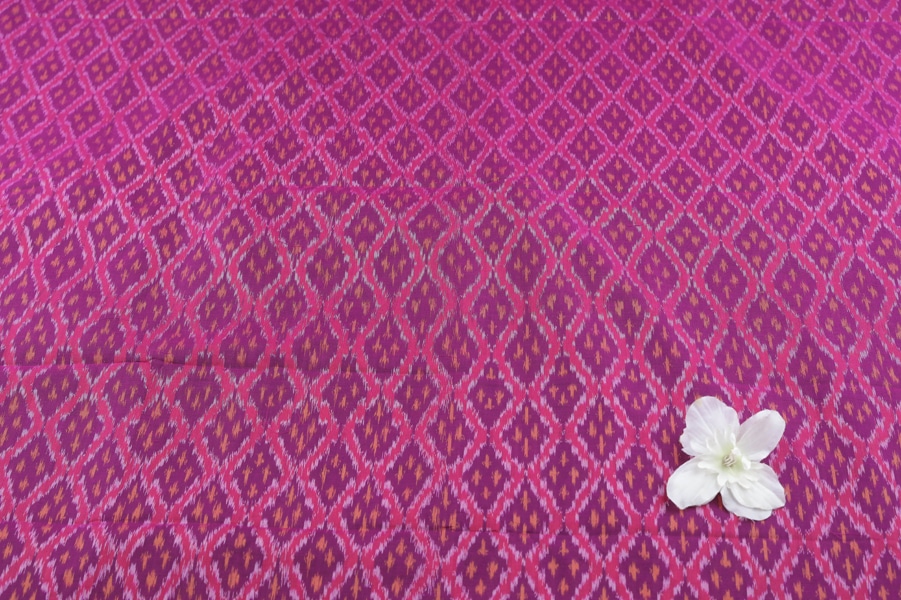 Pinkish Purple Authentic Handwoven Soft Silk-Cotton Ikkat Fabric