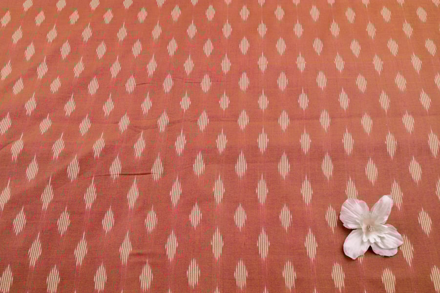 Rosy Copper Brown Mercerised Fine Handloom Ikkat Tie-Dye Pure Soft Cotton Fabric