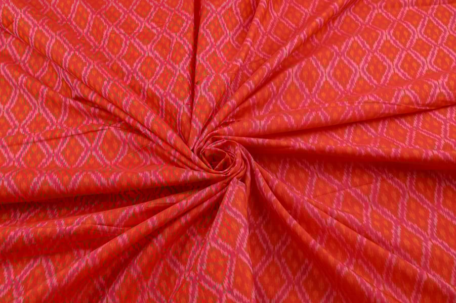 Tangelo Orange Authentic Handwoven Soft Silk-Cotton Ikkat Fabric