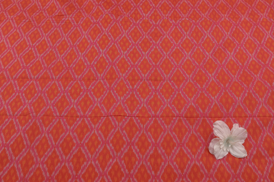 Tangelo Orange Authentic Handwoven Soft Silk-Cotton Ikkat Fabric