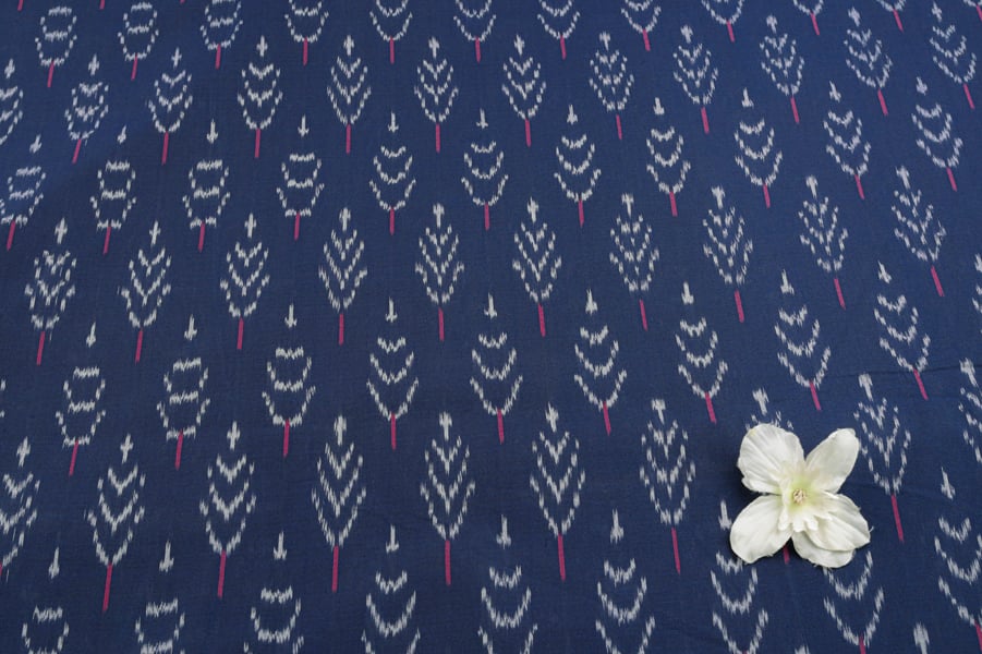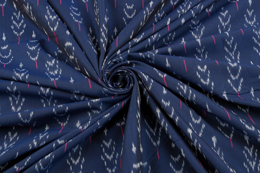 Twilight Indigo Blue Mercerised Fine Handloom Ikkat Tie-Dye Pure Soft Cotton Fabric