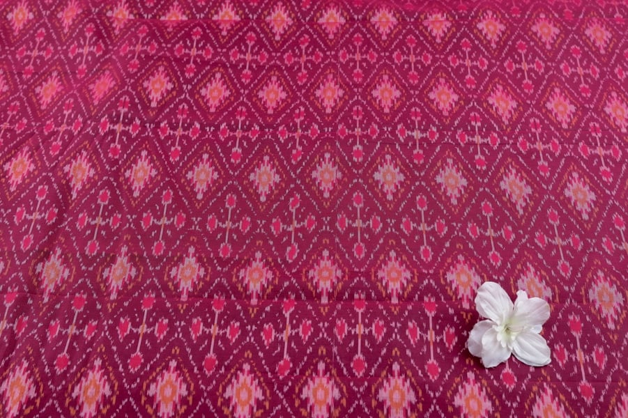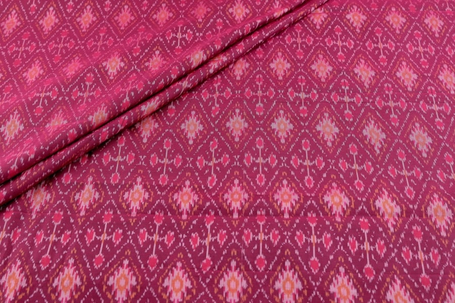 Pink Mercerised Fine Handloom Ikkat Tie-Dye Pure Soft Cotton Fabric
