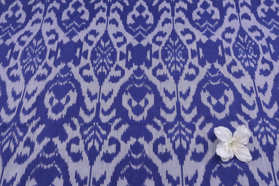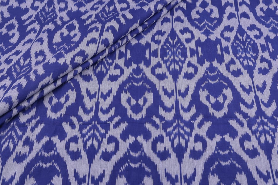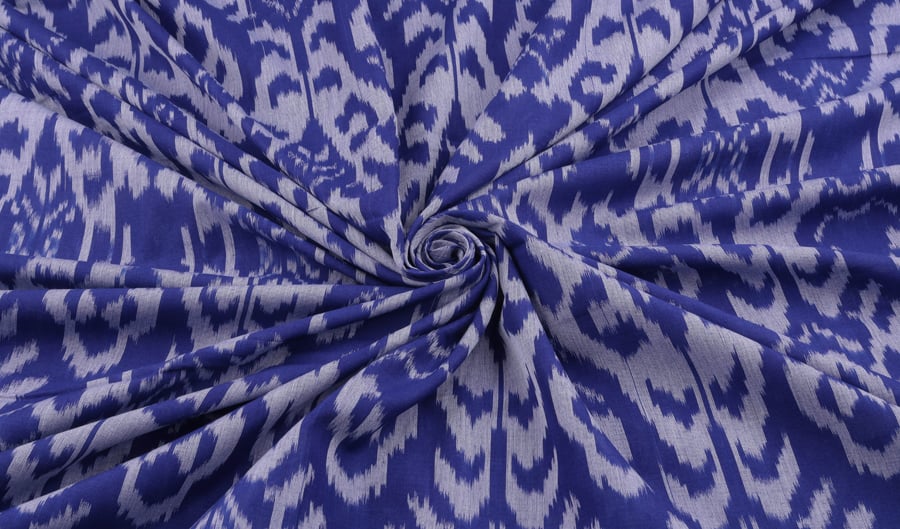 Ultramarine Blue Mercerised Fine Handloom Ikkat Tie-Dye Pure Soft Cotton Fabric