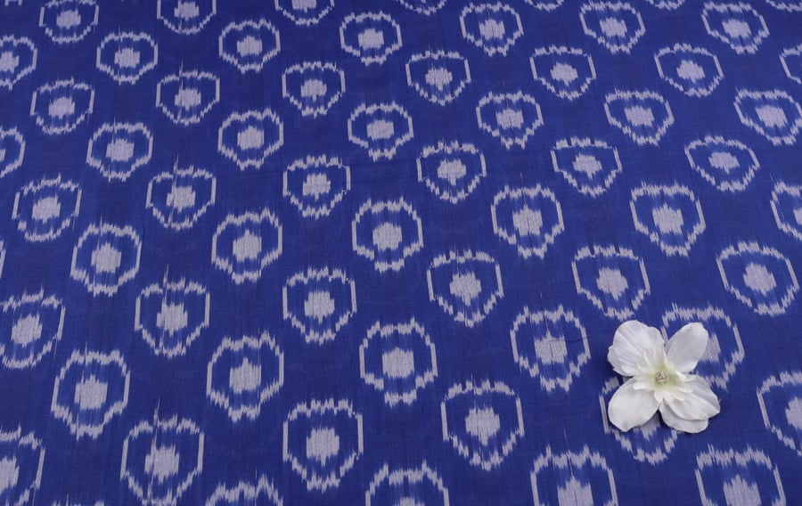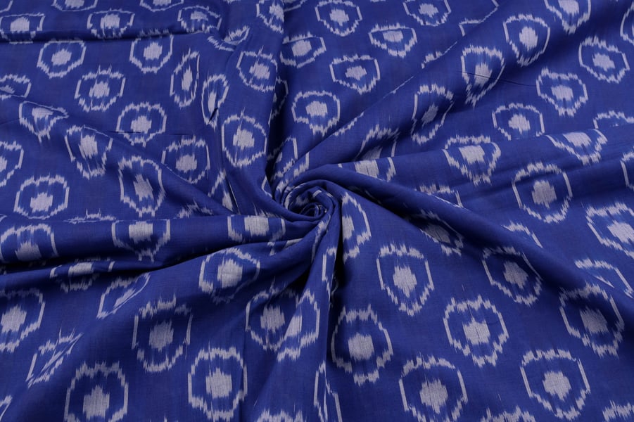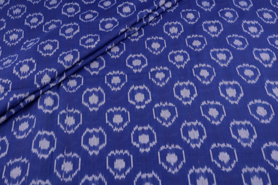 Ultramarine Blue Mercerised Fine Handloom Ikkat Tie-Dye Pure Soft Cotton Fabric