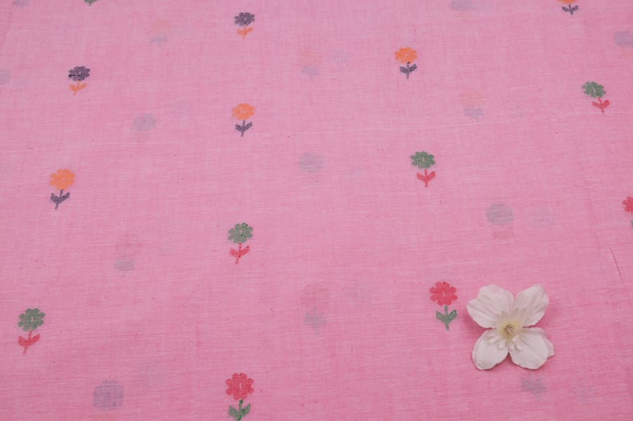 Authentic HandLoom Woven, Eco-Friendly Dyes, Jamdani Flowy 100% Pure Soft Cotton Fabric
