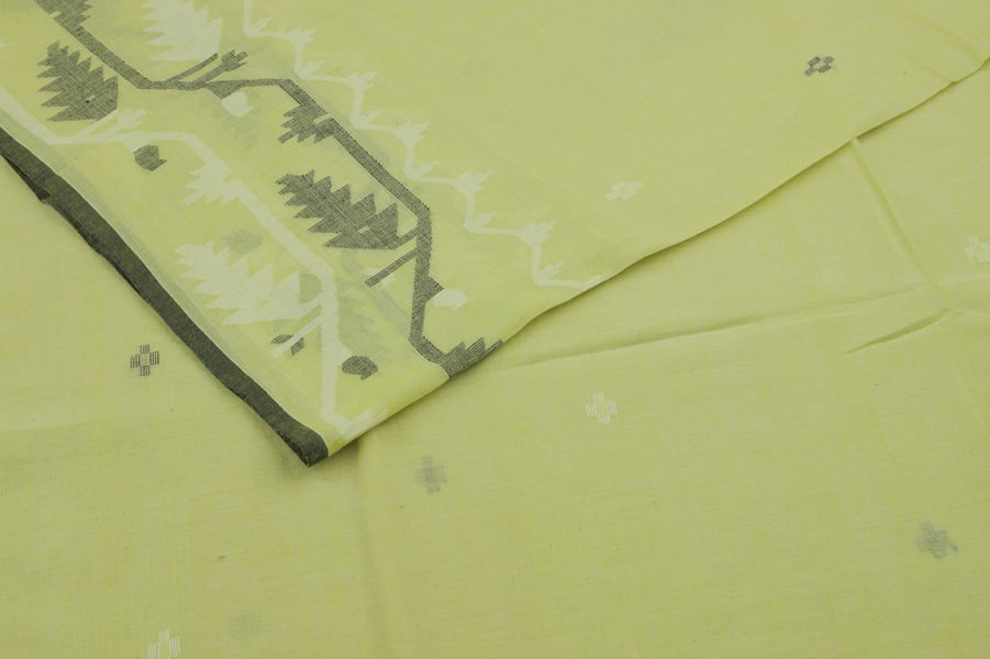 Bamboo Green Handloom Jamdani Intricate Border Flowy HandLoom Pure Soft Cotton Fabric