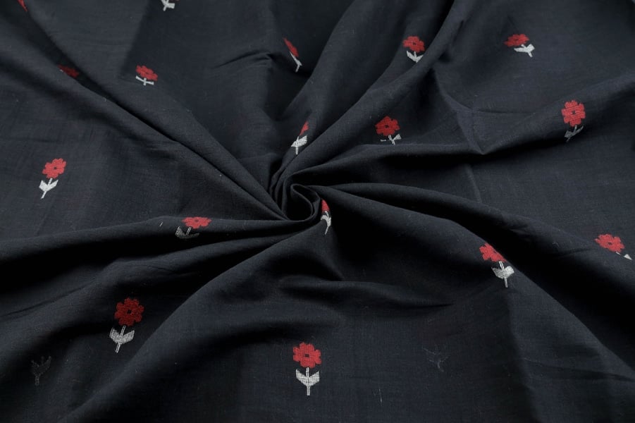 Authentic HandLoom Woven, Eco-Friendly Dyes, Jamdani Flowy 100% Pure Soft Cotton Fabric
