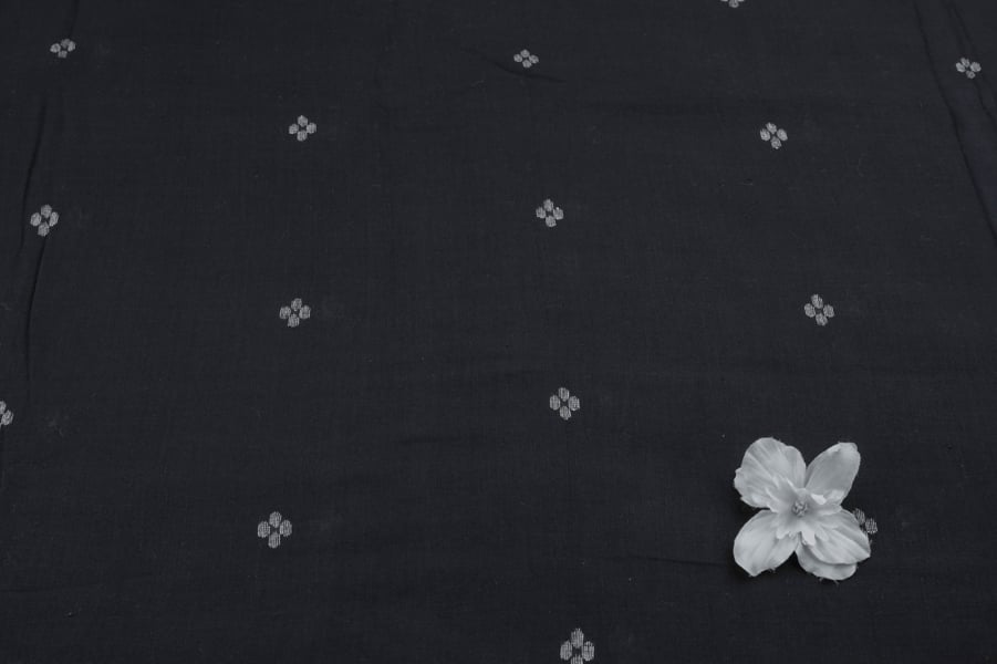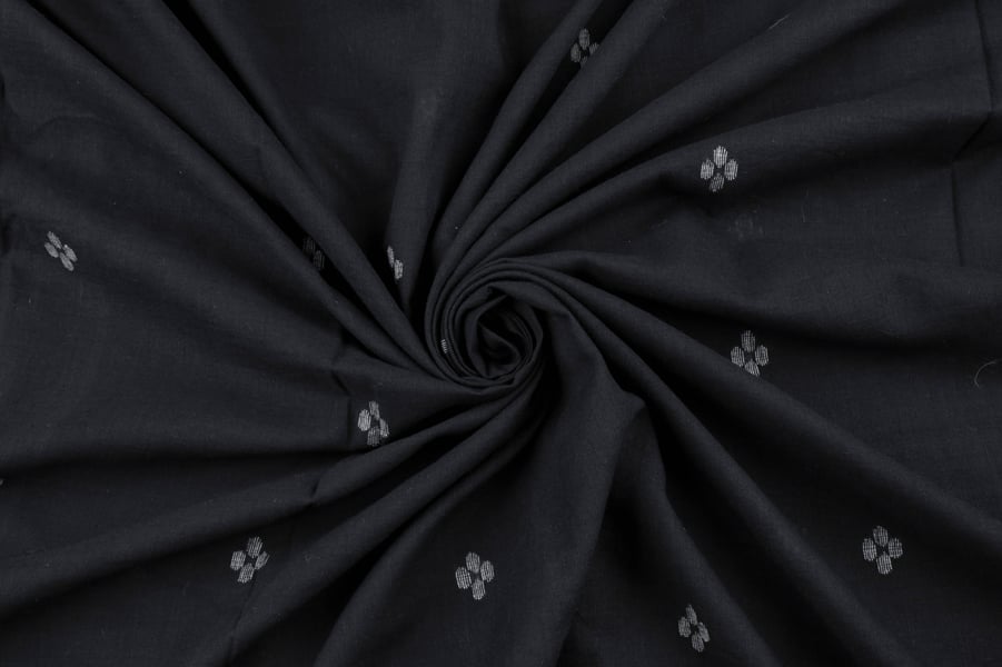 Black Woven Design Flowy HandLoom Pure Soft Cotton Fabric