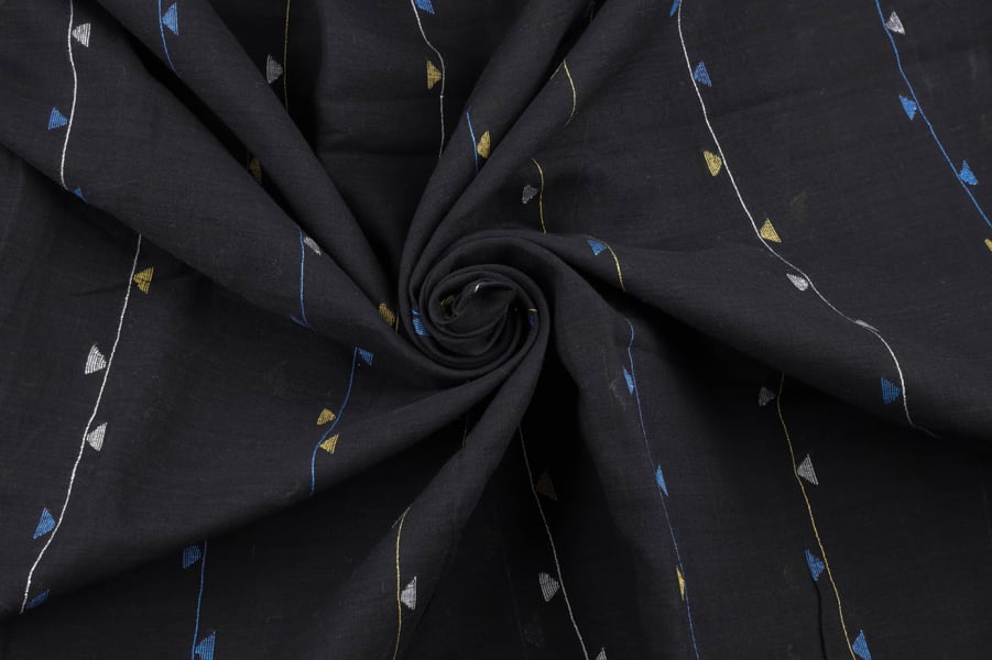 Black Woven Design Flowy HandLoom Pure Soft Cotton Fabric
