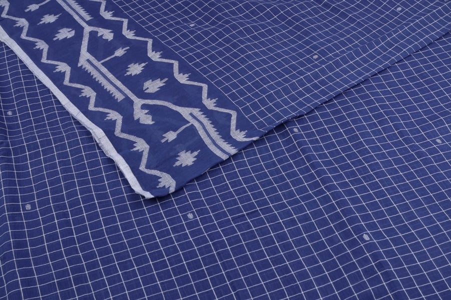 Blue Handloom Intricate Border Flowy HandLoom Pure Soft Cotton Fabric