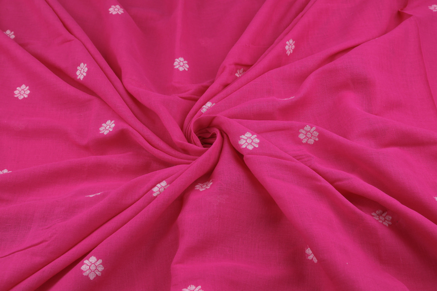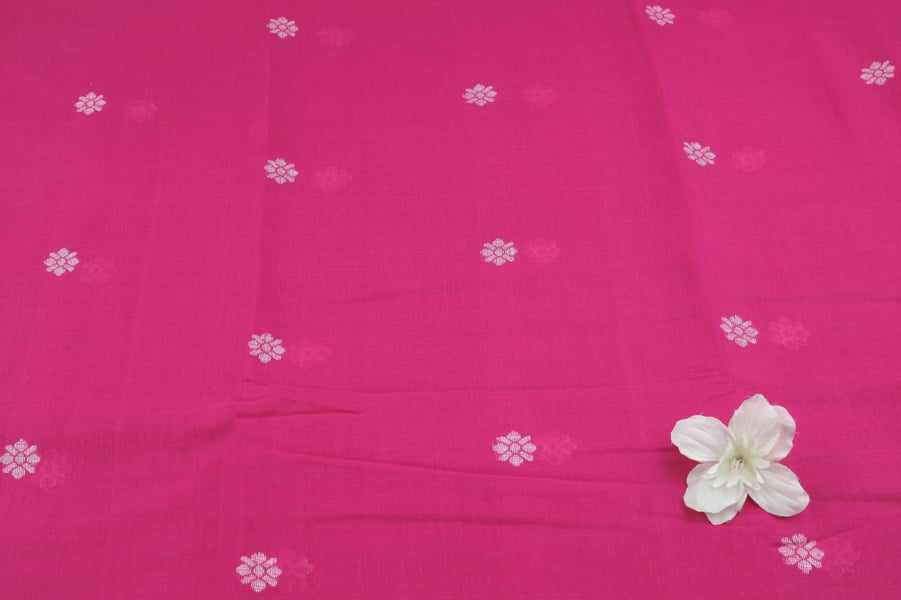 Hot Pink Woven Design Flowy HandLoom Pure Soft Cotton Fabric
