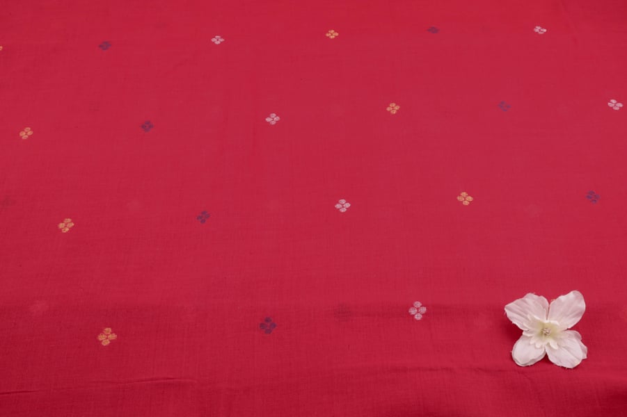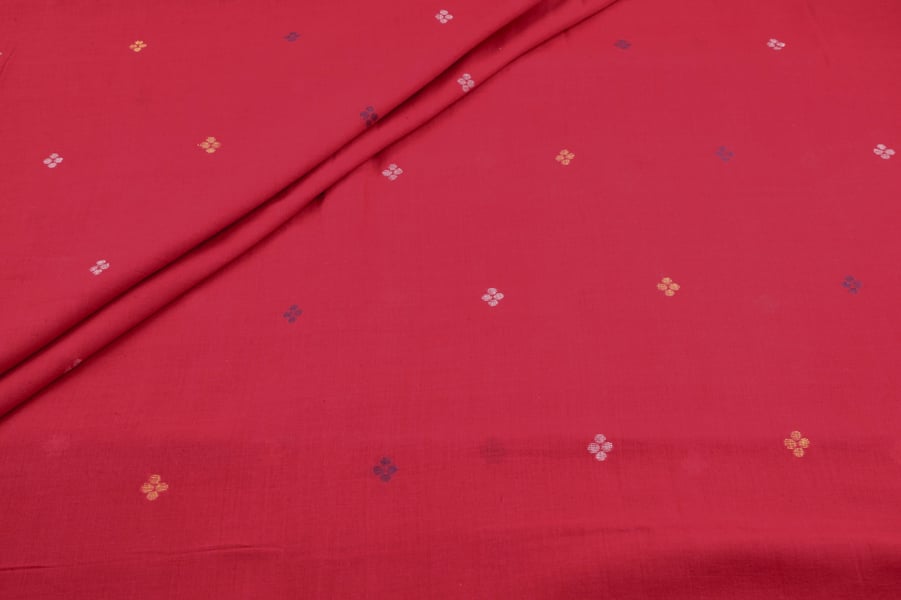 Bright Red Authentic HandLoom Woven Design Flowy Soft Cotton Fabric