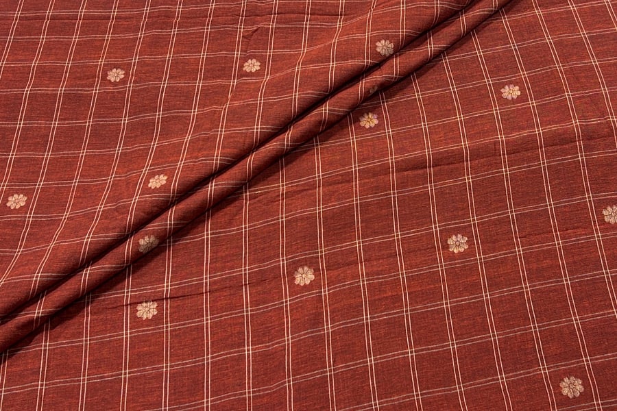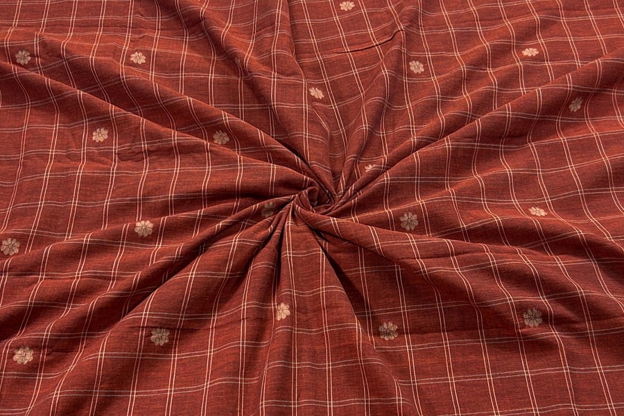 Burnt Umber Brown Checkered Woven Design Flowy HandLoom Pure Soft Cotton Fabric