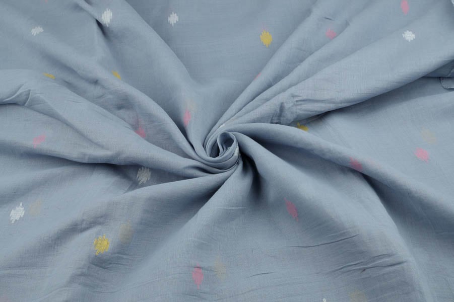 Cadet Gray Woven Design Flowy HandLoom Pure Soft Cotton Fabric