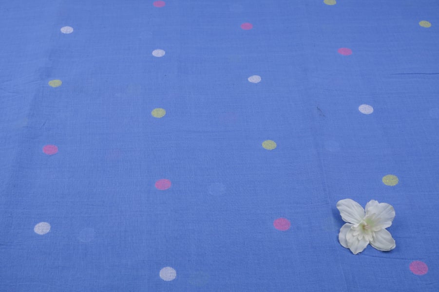 Cornflower Blue Woven Design Flowy HandLoom Pure Soft Cotton Fabric