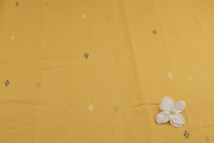 Daisy Yellow Handloom Intricate Border Flowy HandLoom Pure Soft Cotton Fabric