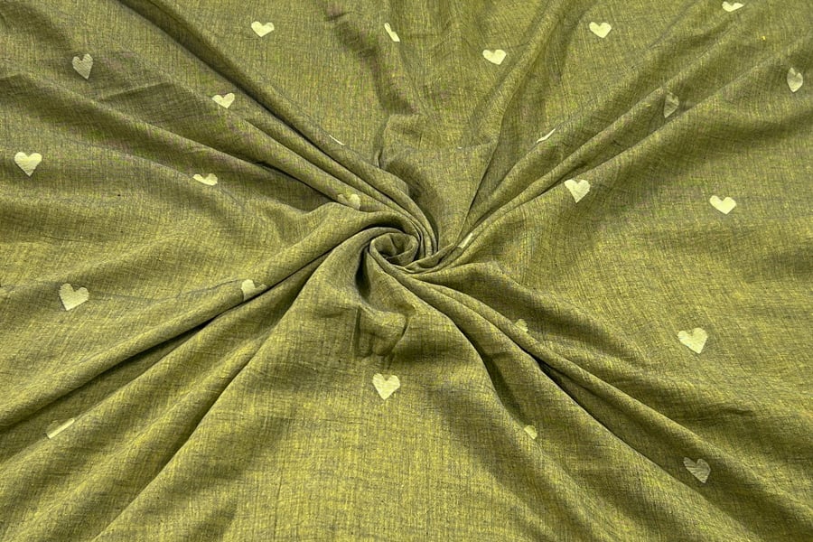 Dusty Olive Green Woven Design Flowy HandLoom Pure Soft Cotton Fabric