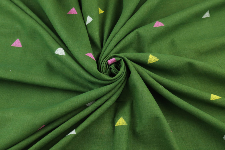 Green – Forest Moss Jamdani Design Soft Cotton Fabric