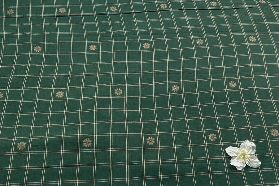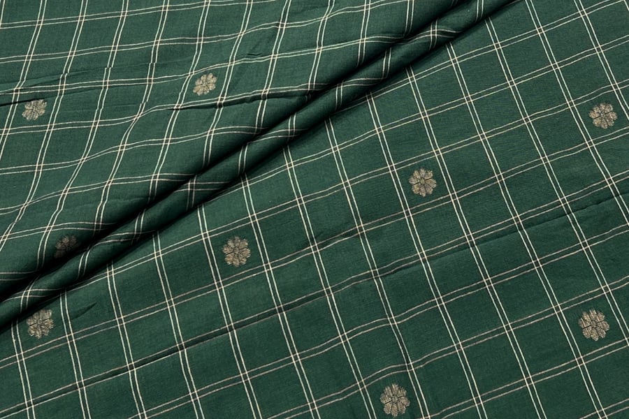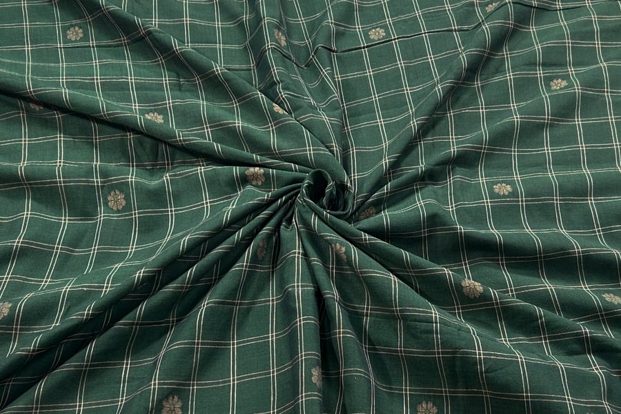 Hunter Green Checkered Woven Design Flowy HandLoom Pure Soft Cotton Fabric