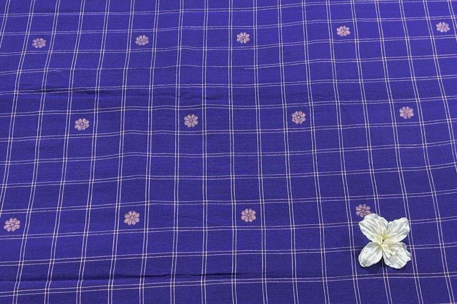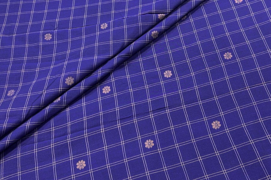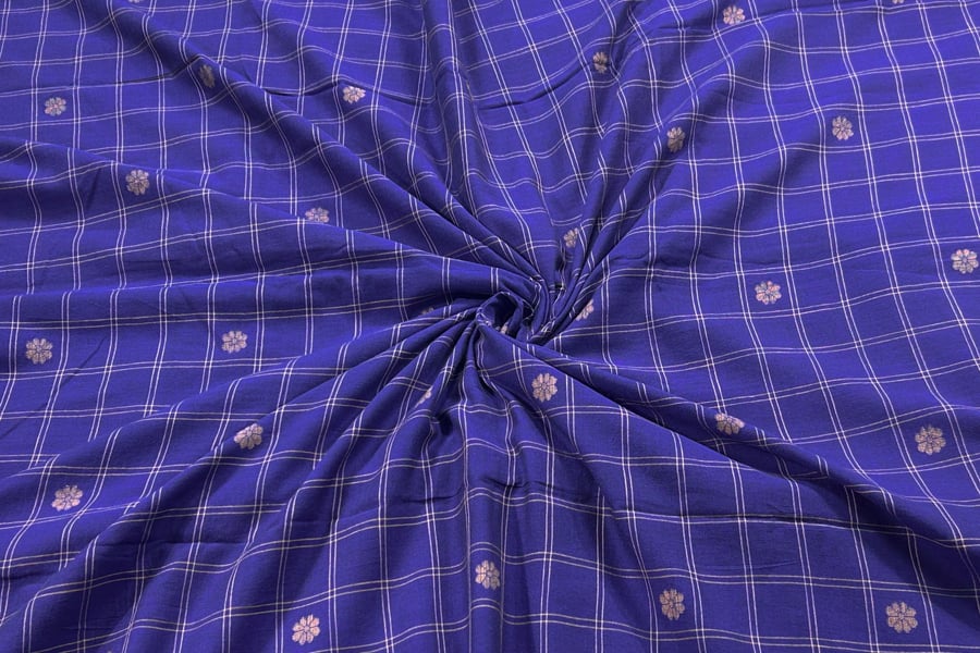 Iris Blue Checkered Woven Design Flowy HandLoom Pure Soft Cotton Fabric