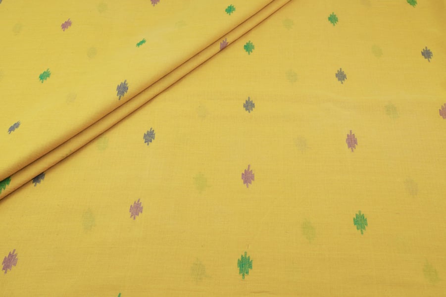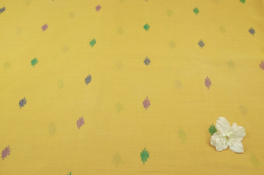 This Fabric is handloom woven and / or hand printed using vegetable dyes. There might be slight irregularities in the motif & colour shade which is a result of human involvement & is a hallmark of fabrics made by hand. Since the fabric is dyed using natural, vegetable dyes, it may rub dry or bleed colour on coming in contact with water for the first time.