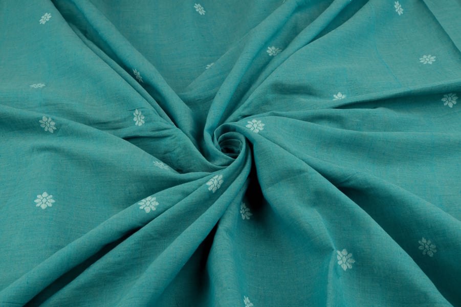 Mint Blue Woven Design Flowy HandLoom Pure Soft Cotton Fabric
